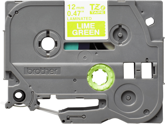 Brother White On Lime Green Label Tape 12mm x 5m - TZEMQG35