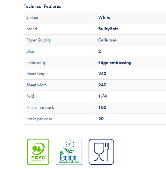 Bulky Soft Napkins/Serviette 2Ply 24x24cm WHITE 100's {32196}