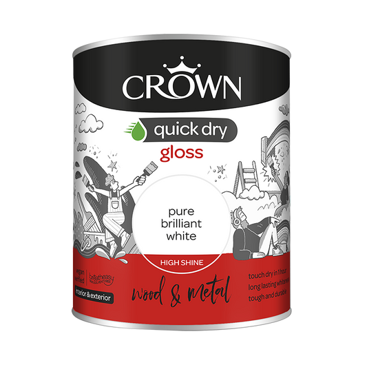 Crown Quick Dry Gloss Pure Brilliant White 750Ml Wood & Metal, Internal & External