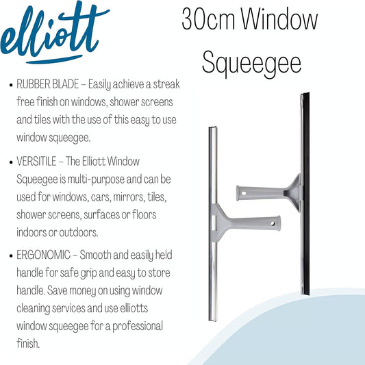 Elliott Multi-Purpose Window Squeegee 30Cm Rubber Squeegee With An Ergonomic Grey Handle.
