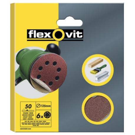 Flexovit Hook & Loop Sanding Disc 125mm Coarse 50G Pack 6