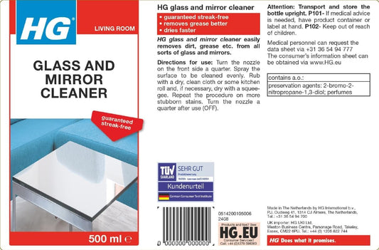 HG Glass and Mirror Cleaner, Streak-Free Glass Cleaner 500ml