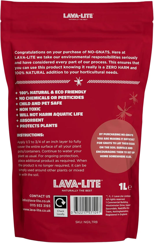 Lava-Lite No Gnats | Original Natural Fungus Gnat Killer for Houseplants, Soil & Compost | Child & Pet Safe | Cost Effective, Chemical Free Pest Control.