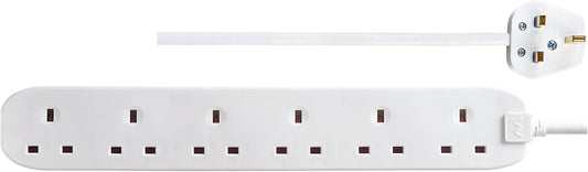 Masterplug Six Socket Extension Lead, 2 Metre, White