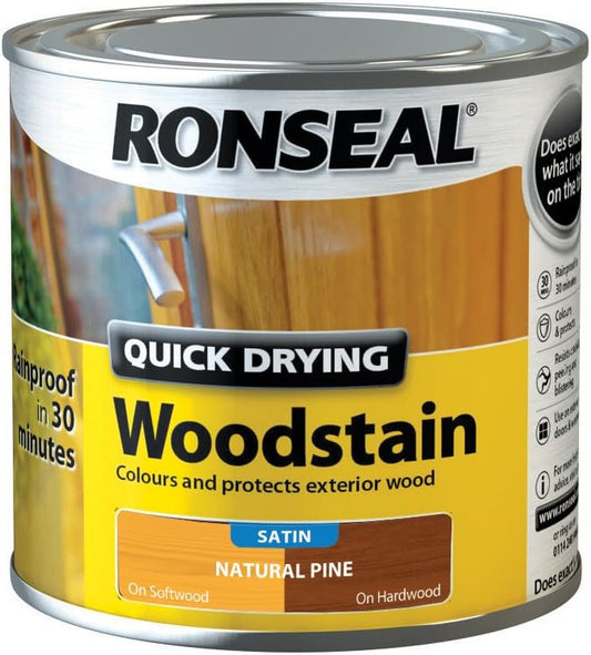 Ronseal Natural Pine Satin Woodstain | Soft or Hard Wood | Quick Drying | 250ml
