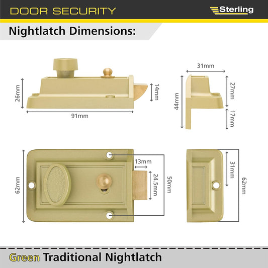 Sterling Standard Nightlatch | Left & righthanded Doors | Champagne | Full Pack | 2 keys | NLS101