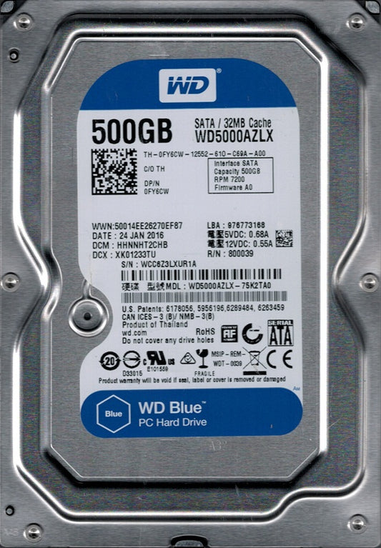 Western Digital Blue 500GB 3.5 Inch Desktop Internal Hard Drive