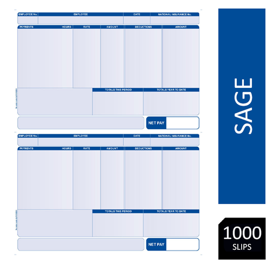 Sage (SE95S) Compatible 1-Part Laser Pay Advice Forms 250 Sheets/500 Payslips