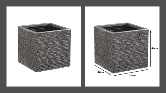 Strata Slate Pewter 32cm Short Square Planter {GN686-PEW}