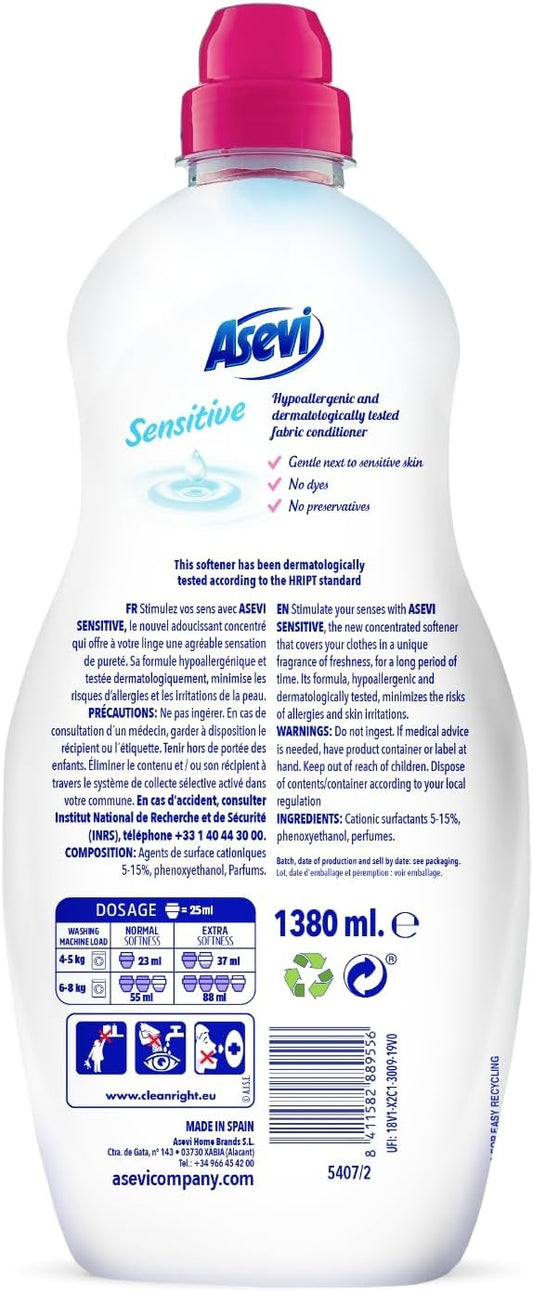 Asevi Fabric Conditioner & Softener Concentrate, 1380ML, 60W, Sensitive