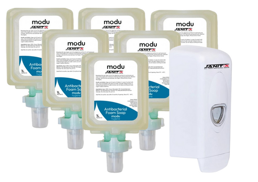 Janit-X MODU 1L Anti-Bacterial Luxury Foam Soap Cartridges for Soap Dispensers - Clear