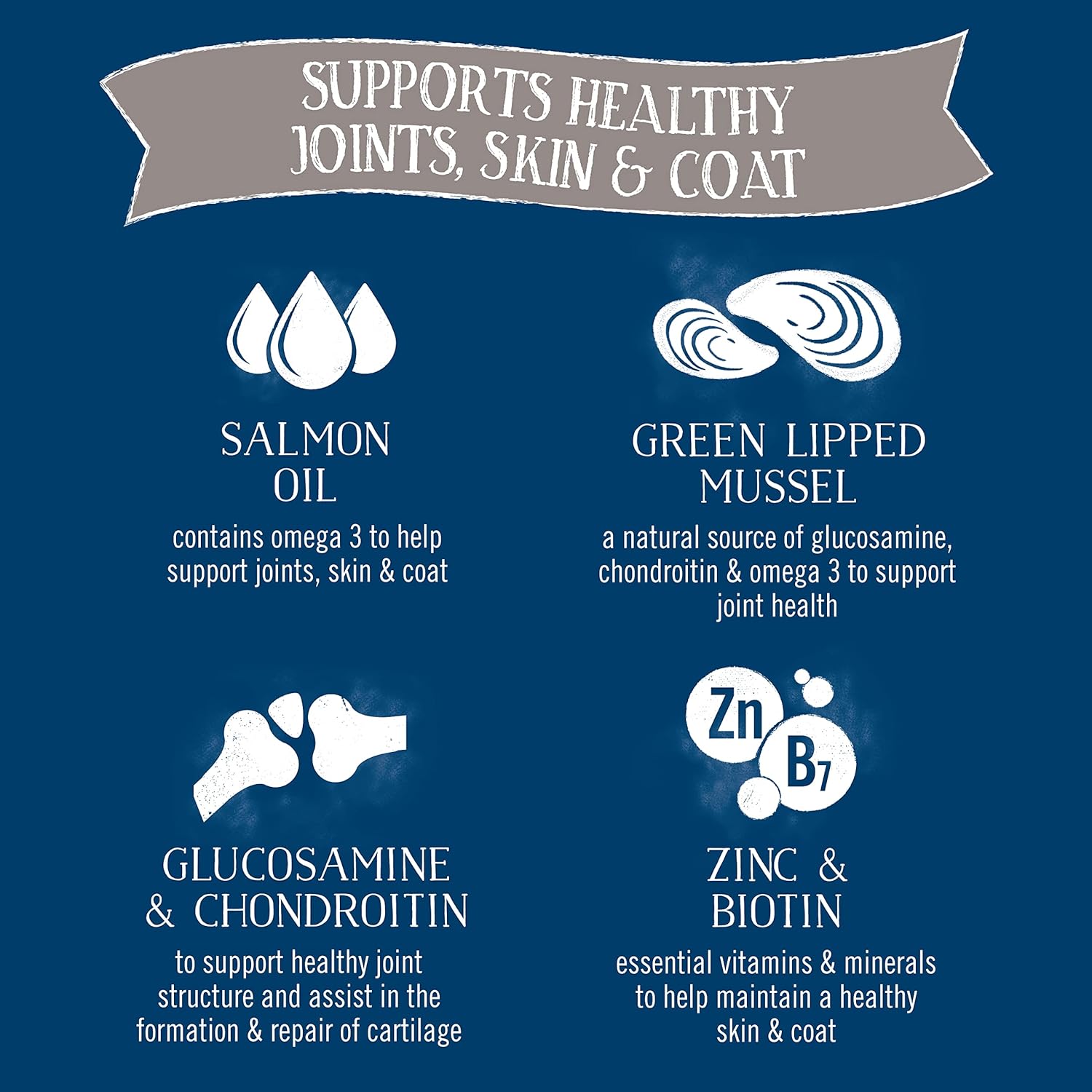 - Salmon oil contains essential omega 3 which helps in supporting joints, skin & coat.