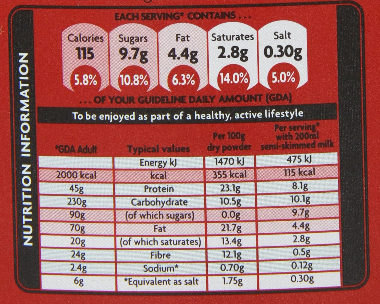 Cocoa for drinking or baking Fairtrade - providing a better deal for producers in developing countries Made from 100% cocoa beans - a natural source of antioxidants Suitable for vegetarians Each 4g serving contains Calories 105 5.3% of your GDA Cocoa for drinking or baking.