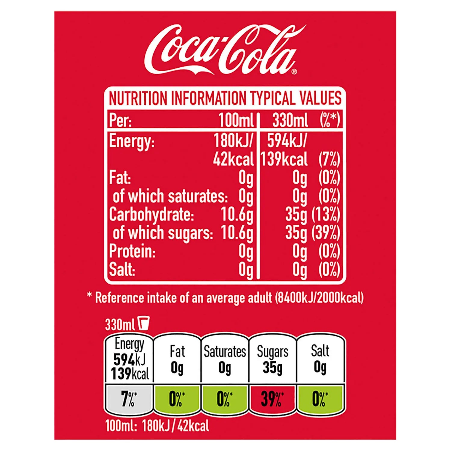 Coca Cola is a great-tasting, refreshing soft drink with natural flavours and no added preservatives and in this pack, you not only get the unquestionable taste, you also get 24 cans for your cash. Each can contains 330ml and is suitable for both vegetarians and vegans alike. Coca-Cola is also gluten, dairy and nut free, making it suitable for people with a number of allergies.