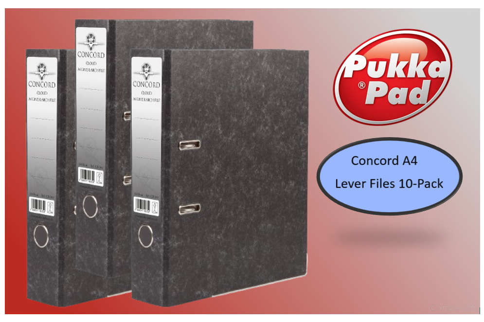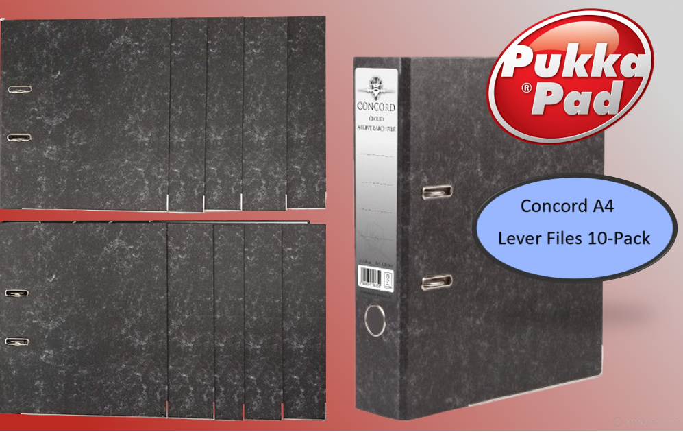 Concord C214047 A4 Classic Lever Arch File (Pack of 10)Lever arch files with a cloud effect paper covering over a high quality board. Metal finger pull lining and reinforced bottom edge provide added durability. Slotted covers provide added file stability when in use. Supplied complete with compressor bar. Spine label for easy identification of contents