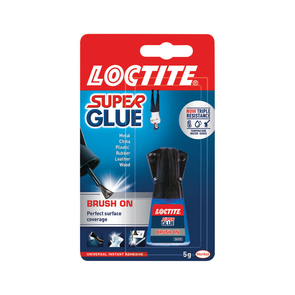 Loctite Super Glue Brush-On is a multi-purpose glue that provides durable, long-lasting and invisible repairs. It comes in a spill resistant bottle for safe storage and a built-in brush applicator which ensures an easy, smooth application allowing an even spread of glue over small and irregularly shaped surfaces. Its powerful liquid and waterproof formula has been developed to form resilient bonds to withstand heavy loads and resist shocks and extreme temperatures. Ideal for all sort of repairs around the workplace, Loctite Brush On Super Glue bonds in seconds and gives long lasting durability on a range of materials including rubber, leather wood, metal and most plastics.