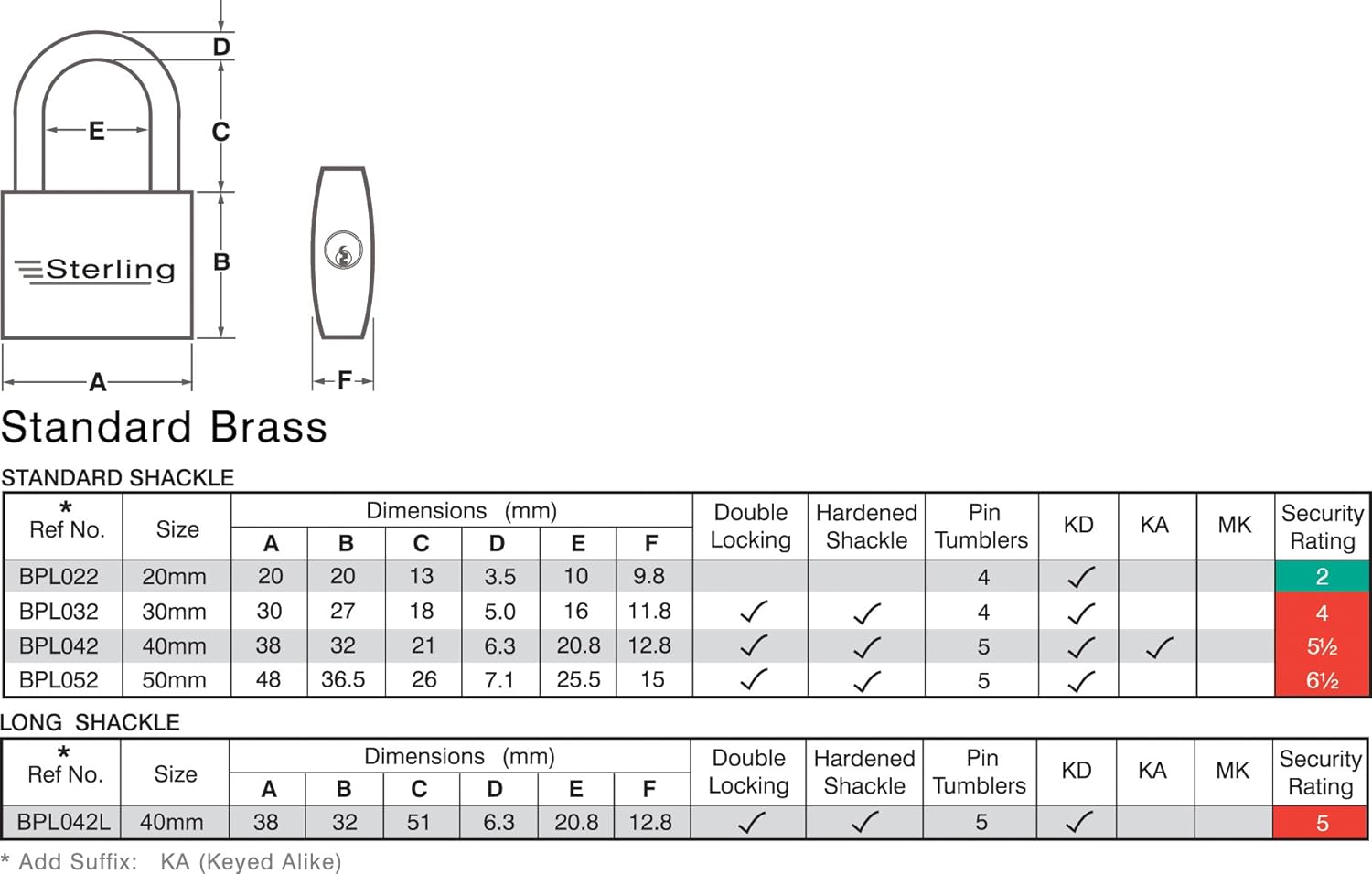 Made with a solid brass body and hardened steel shackle this padlock is reassuringly cut-resistant to ensure protection for your personal property. This padlock has been designed with dual locking levers and a 4-pin cylinder, which means essential protection for your possessions and guard against theft.