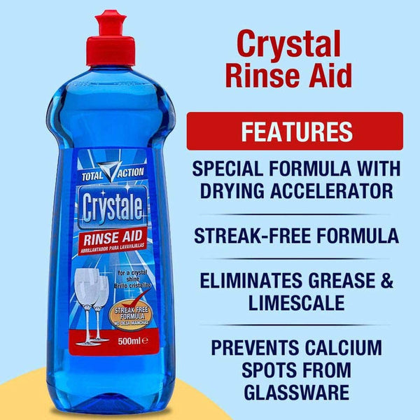 - Crystale Dishwasher Rinse Aid helps you to get sparkling clean dishes. This Dishwasher cleaner gives you spotless and sparkling dishes and streak-free glass ware.