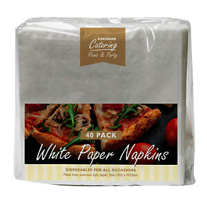 40PK WTE 2PLY NAPKINS 33X33CM