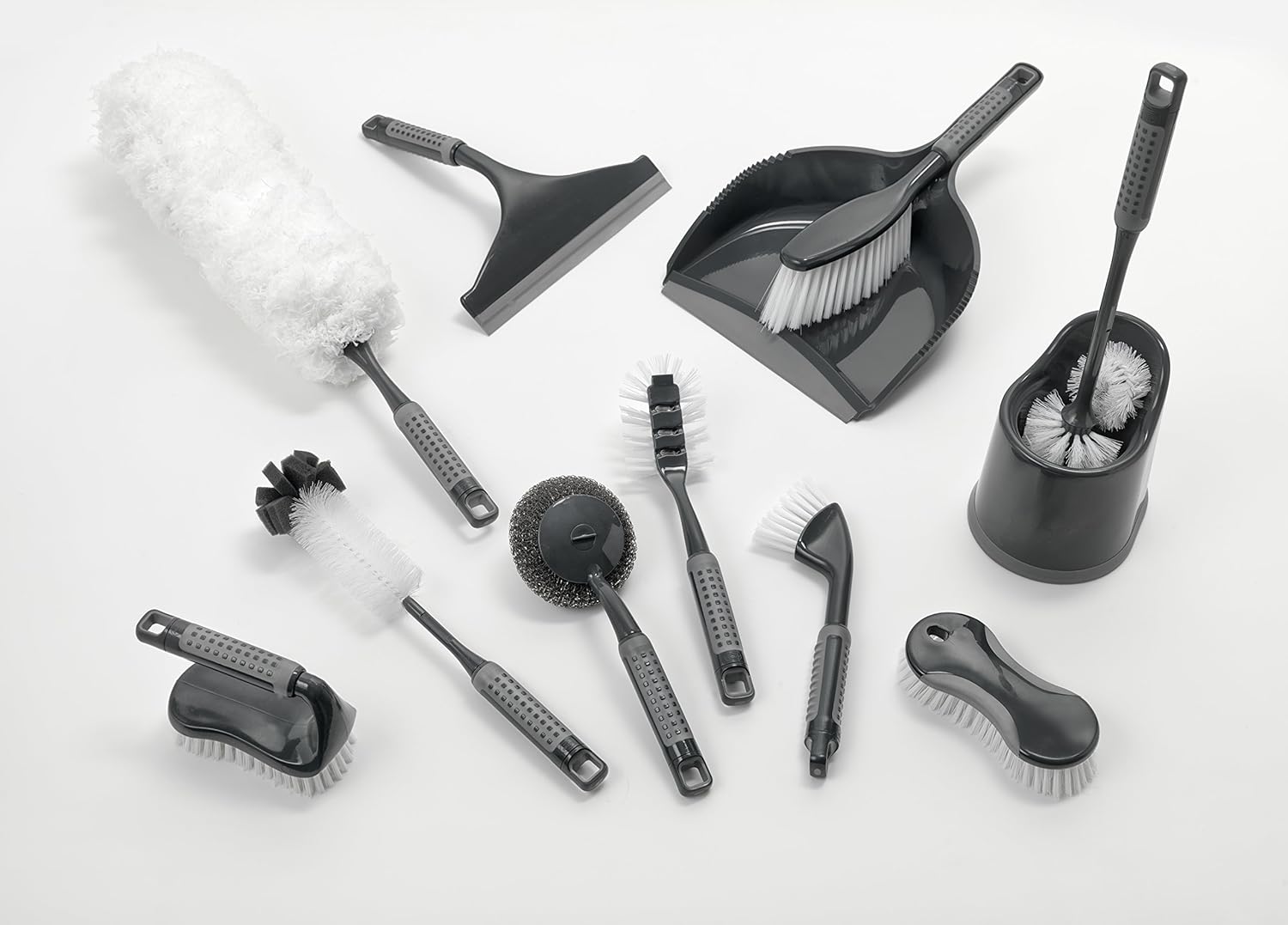 - Long flexible handle, stiff 360 degree bristles and sponge scourer end giving a squeaky clean finish