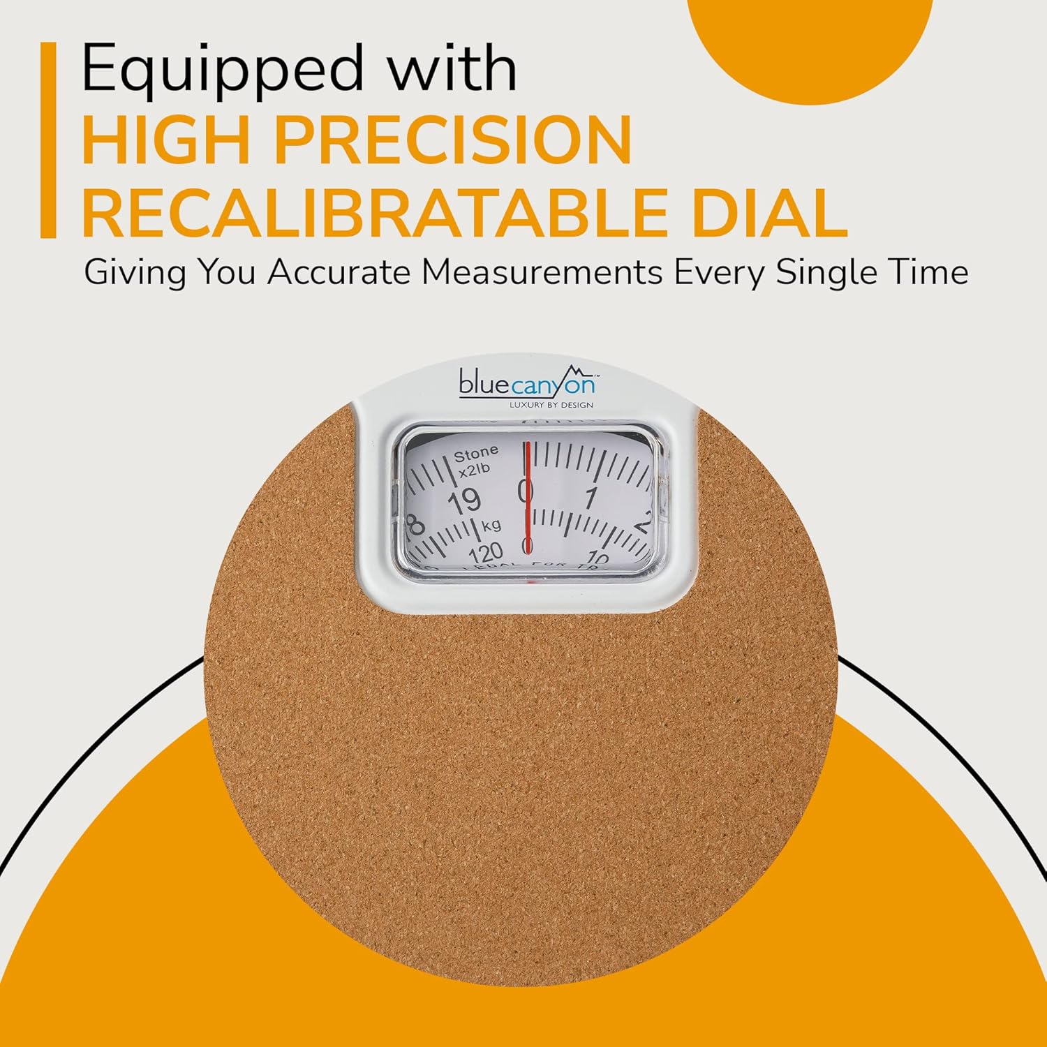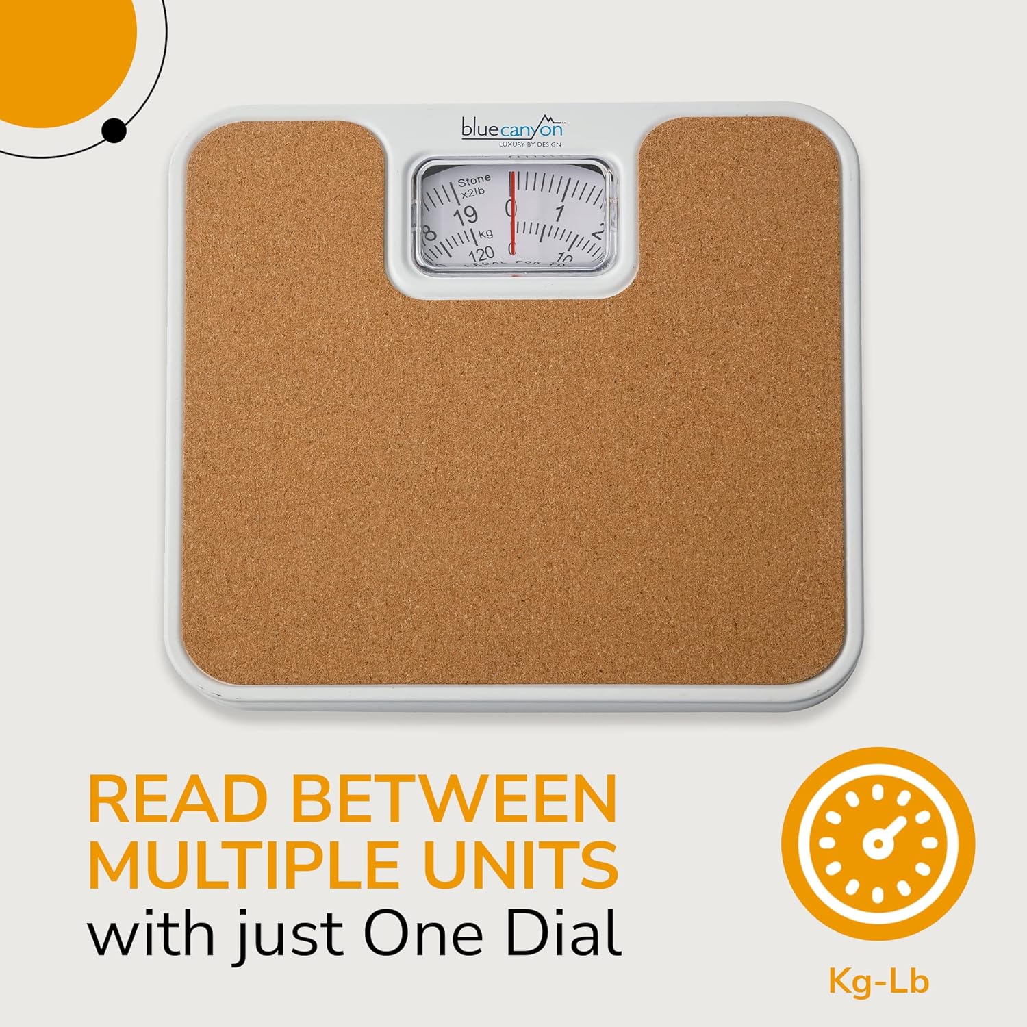 Blue Canyon Mechanical Z Series Bathroom Scales| Measure Body, Luggage Weight| Maintain Fitness| kg/lb Unit Readings| 125kg Max Capacity| High-Precision Mechanics| Accurate Bathroom Scale (Cork)