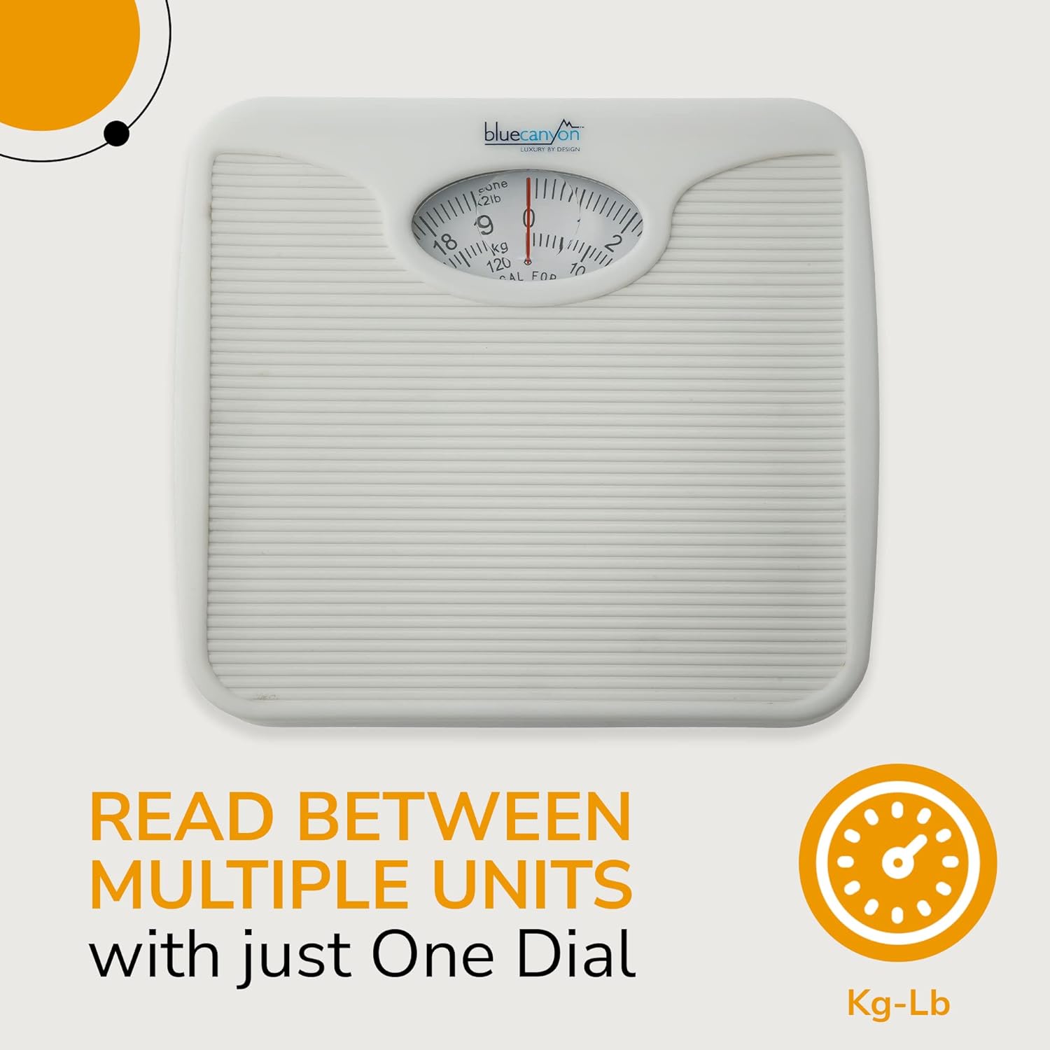 - 【SIMPLE AND ACCURATE】: Just step on it and get your weight! No electronic fluff and no wasteful materials: this analog scale keeps things simple. Using a reliable system of springs, the Blue Canyon Bathroom scales gives you accurate weight readings every time.