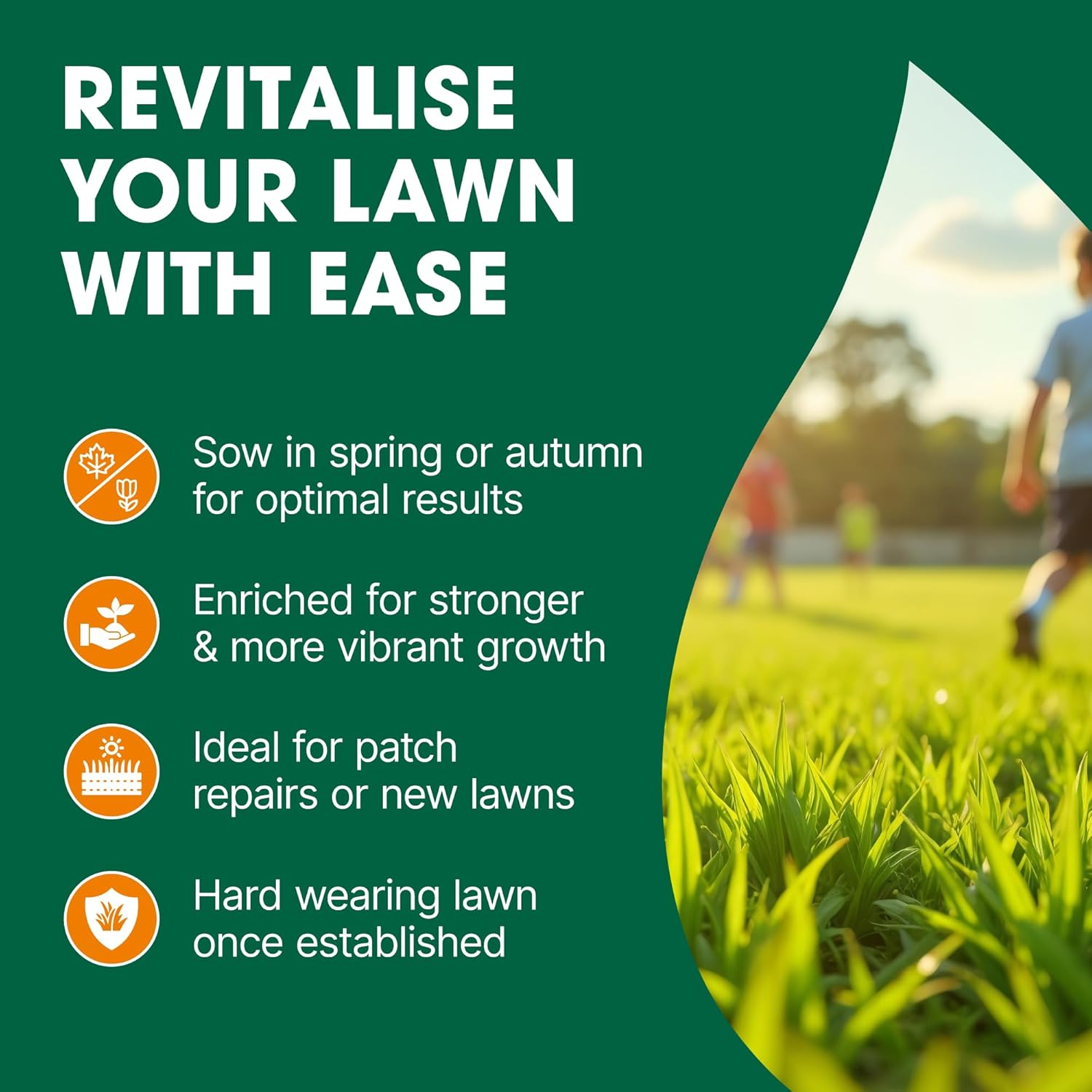 - FAST & RELIABLE GROWTH – Simplify lawn care with this direct-sow formula, designed for quick germination. Cultivate a healthy, uniform lawn with this easy-to-use lawn seed by scattering seeds evenly in spring or autumn and watering. Perfect for effortless lawn maintenance