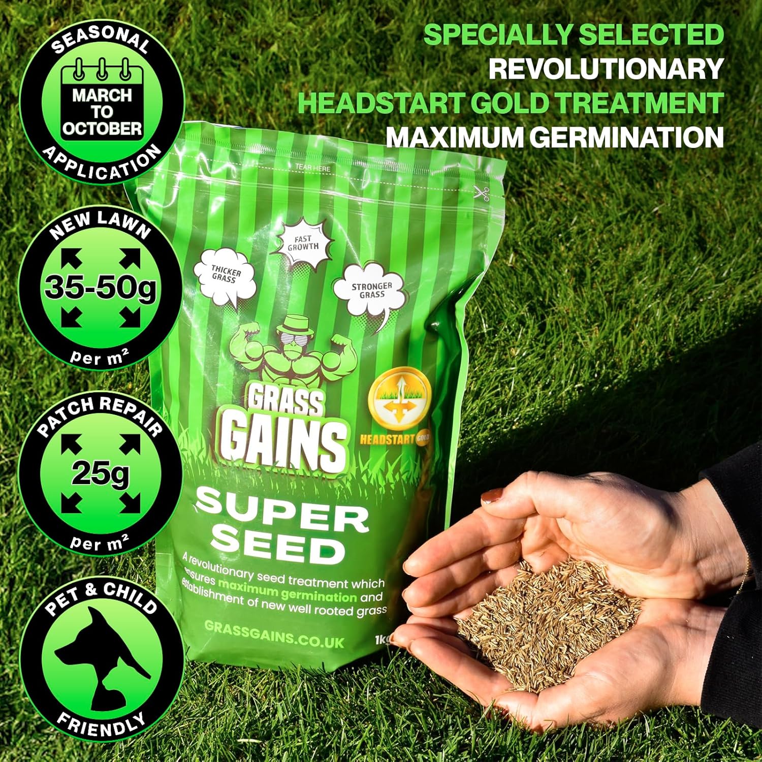 Grass Gains Super Seed 1KG, Fast Growth Lawn Seed