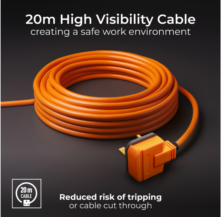Generous 20m cable length, this cable reel offers extensive reach, allowing you to power your garden tools and equipment without being tethered to a fixed power source.
