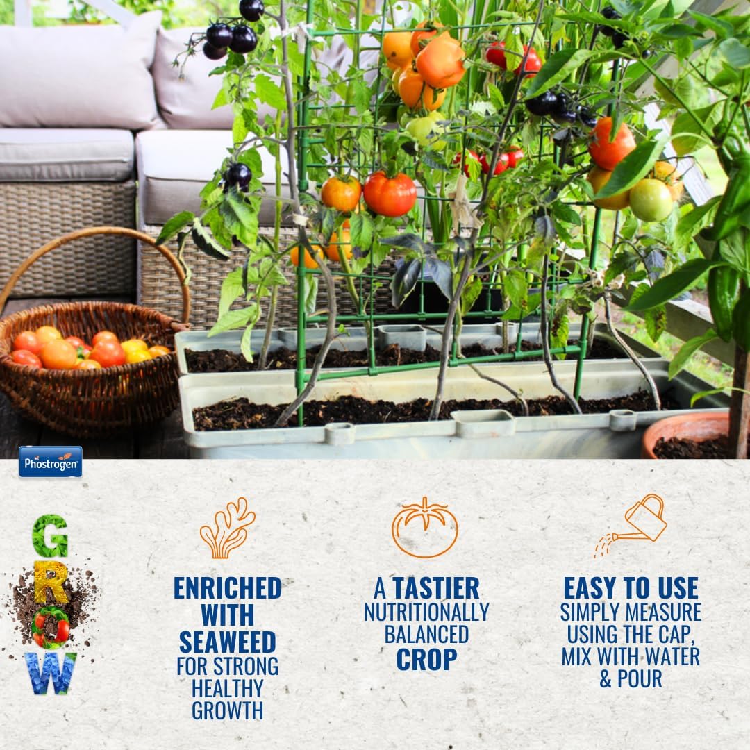 Phostrogen Organic Tomato Food, 1L - Seaweed Enriched Organic Tomato Feed - with Balanced Nutrients for Better Flavour and Bigger, Juicier Yields - Plant Nutrition - Growing Vegetables, Red