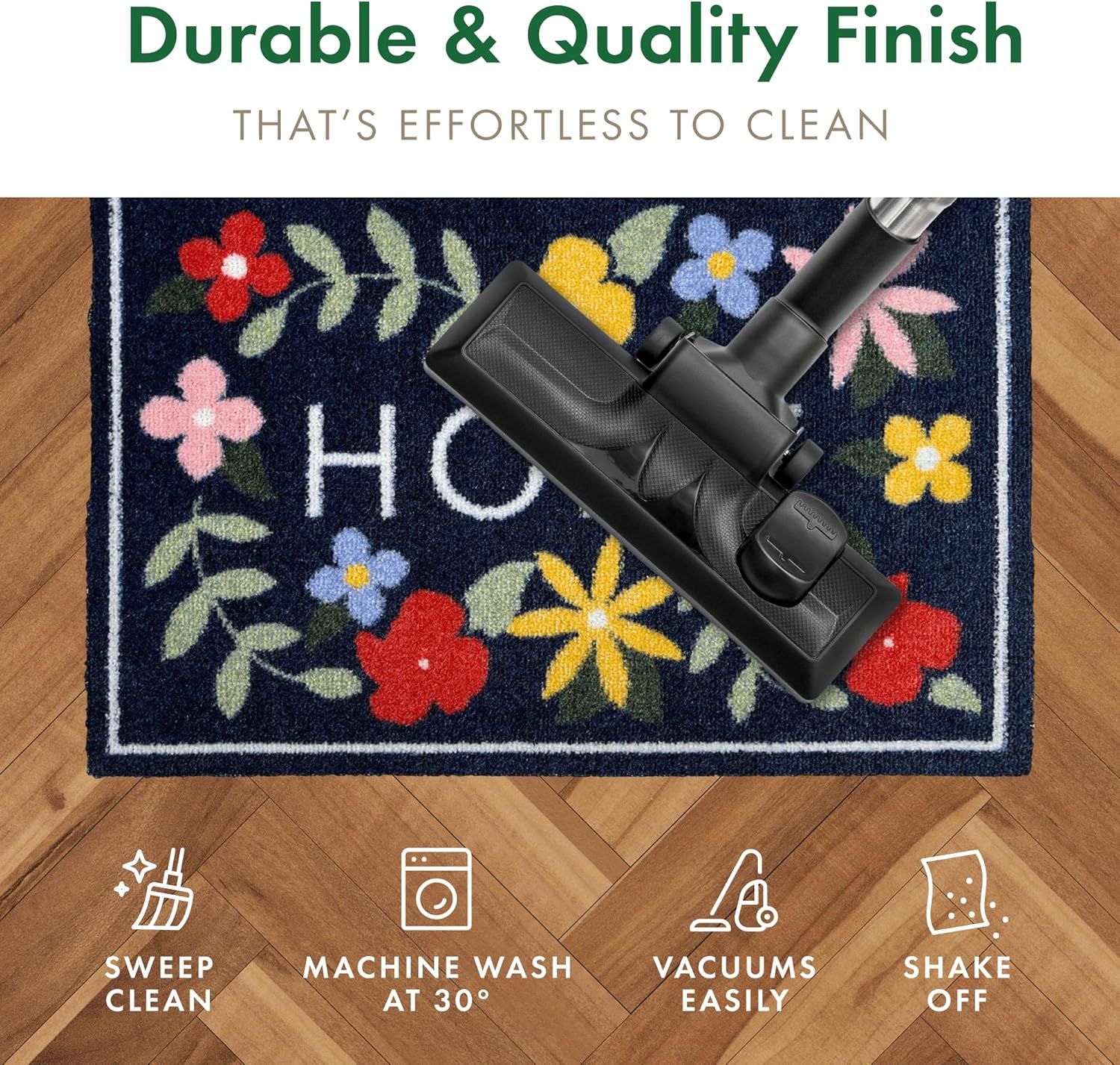 Eco Flex Washable Door Mat Indoor - Highly Absorbent Dirt Trapper Indoor Doormat - Anti-Slip Mat with Anti-Curl Rubber Base - Versatile Floor Mat - Floral Home Navy, 50 x 75cm
