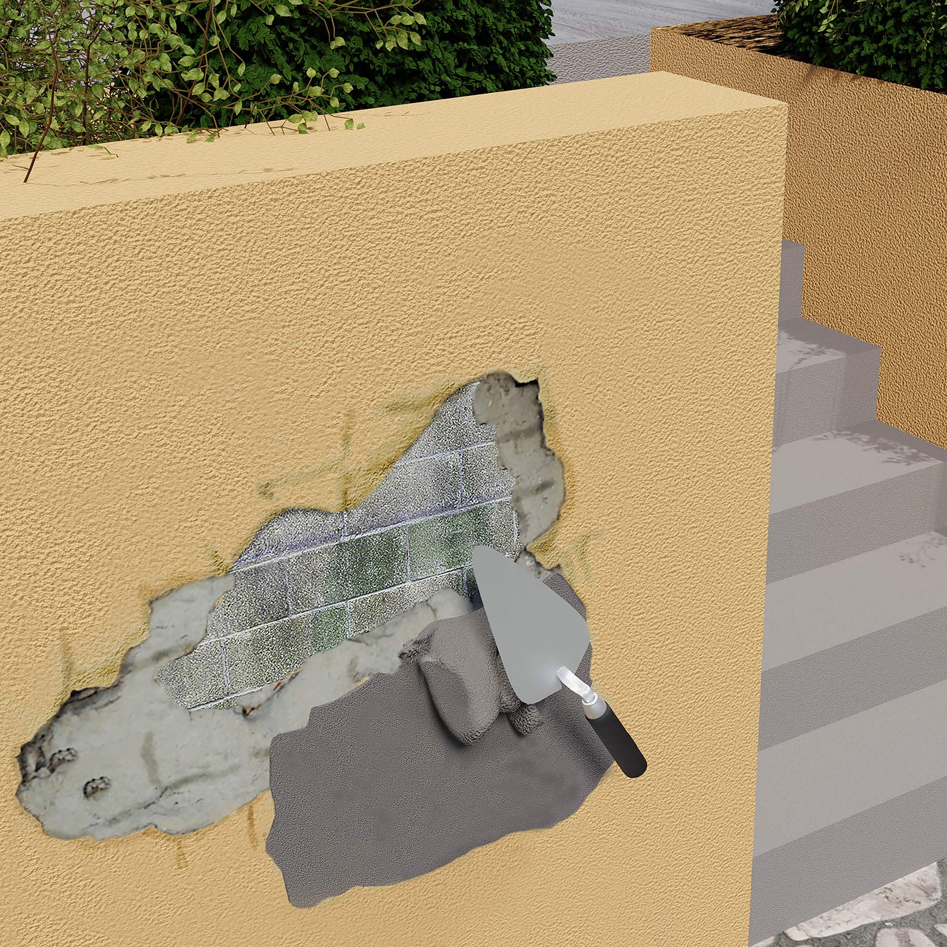 - Patching steps and window sills.
