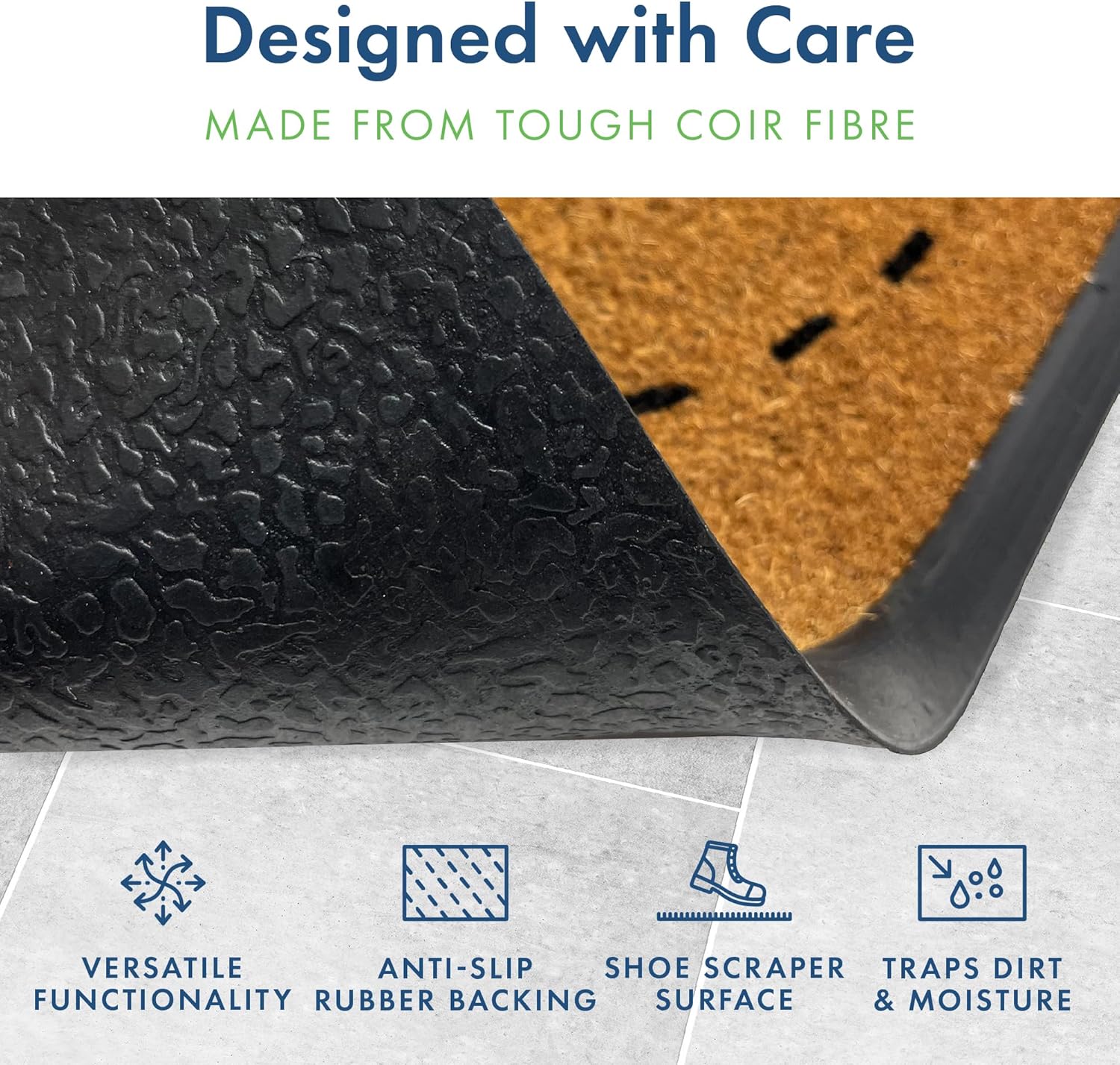 - PREMIUM OUTDOOR MAT – Discover a doormat for every outside sheltered entrance and style with our Rubber and Coir Mat Collection. This range of outdoor door rugs is made from tough coir fibre with a durable rubber backing, ensuring it stays firmly in place for ultimate stability and durability
