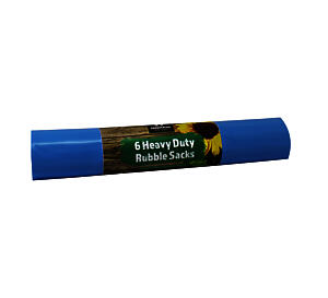 6 pack blue extra strong 40L rubble sacks. H700mm x W500mm, 55 microns