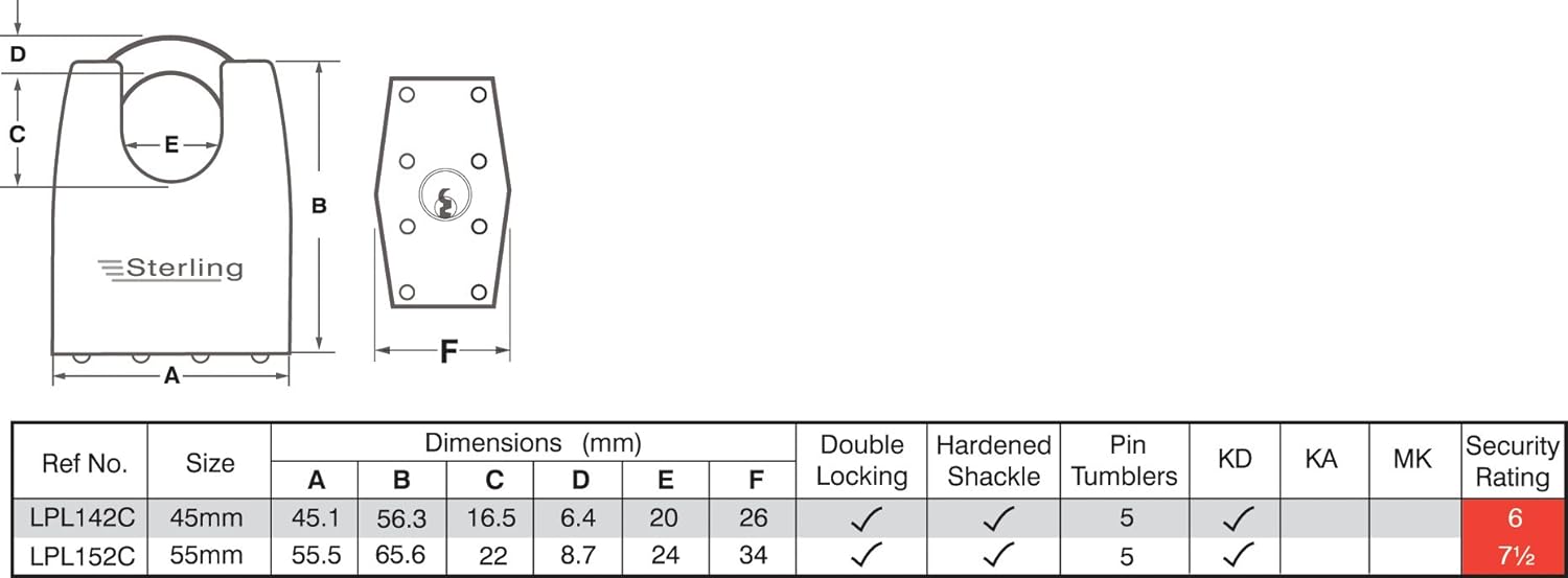 Sterling Lpl152C 55 Mm Laminated Steel Padlock With Abs Plastic Cover And Closed Shackle , Black