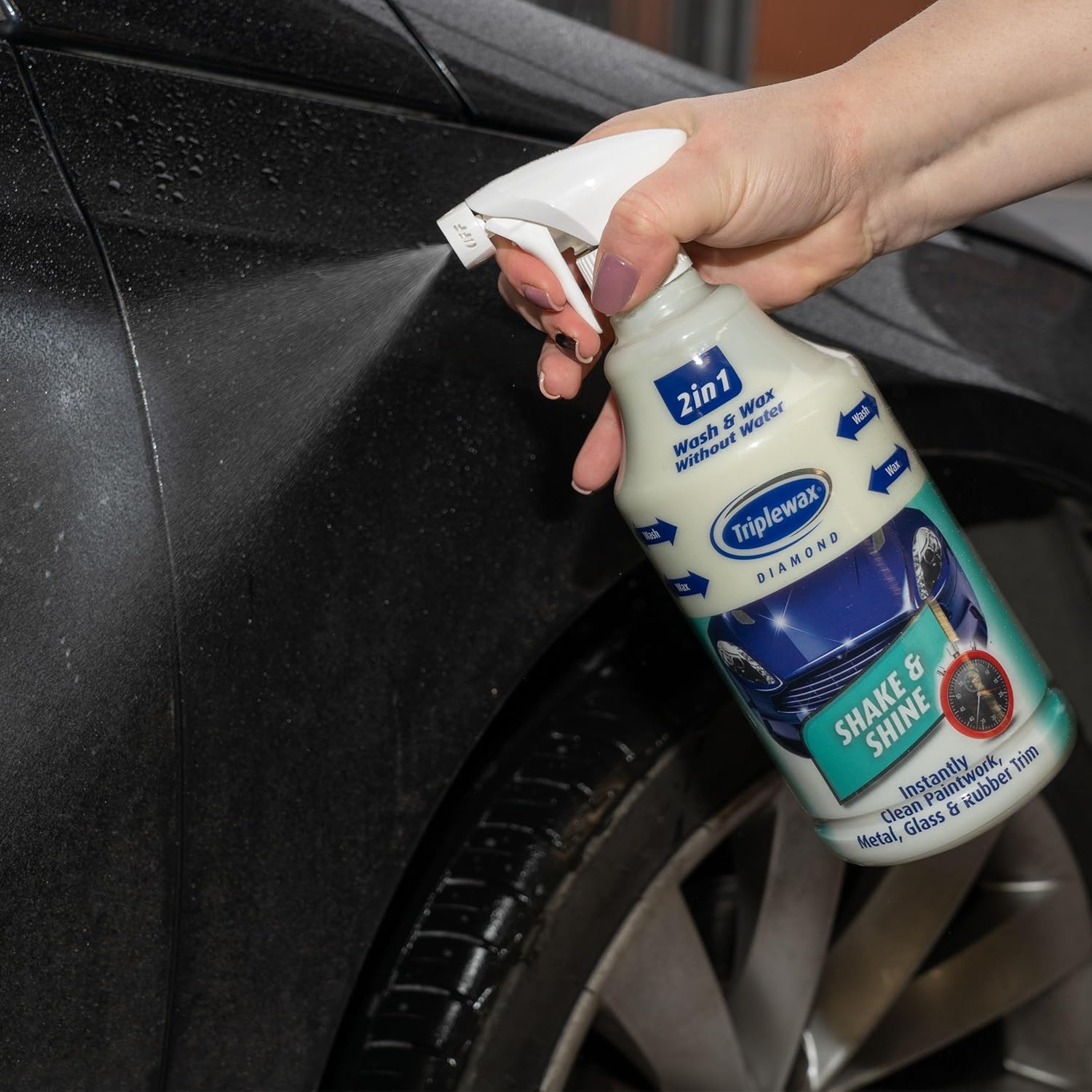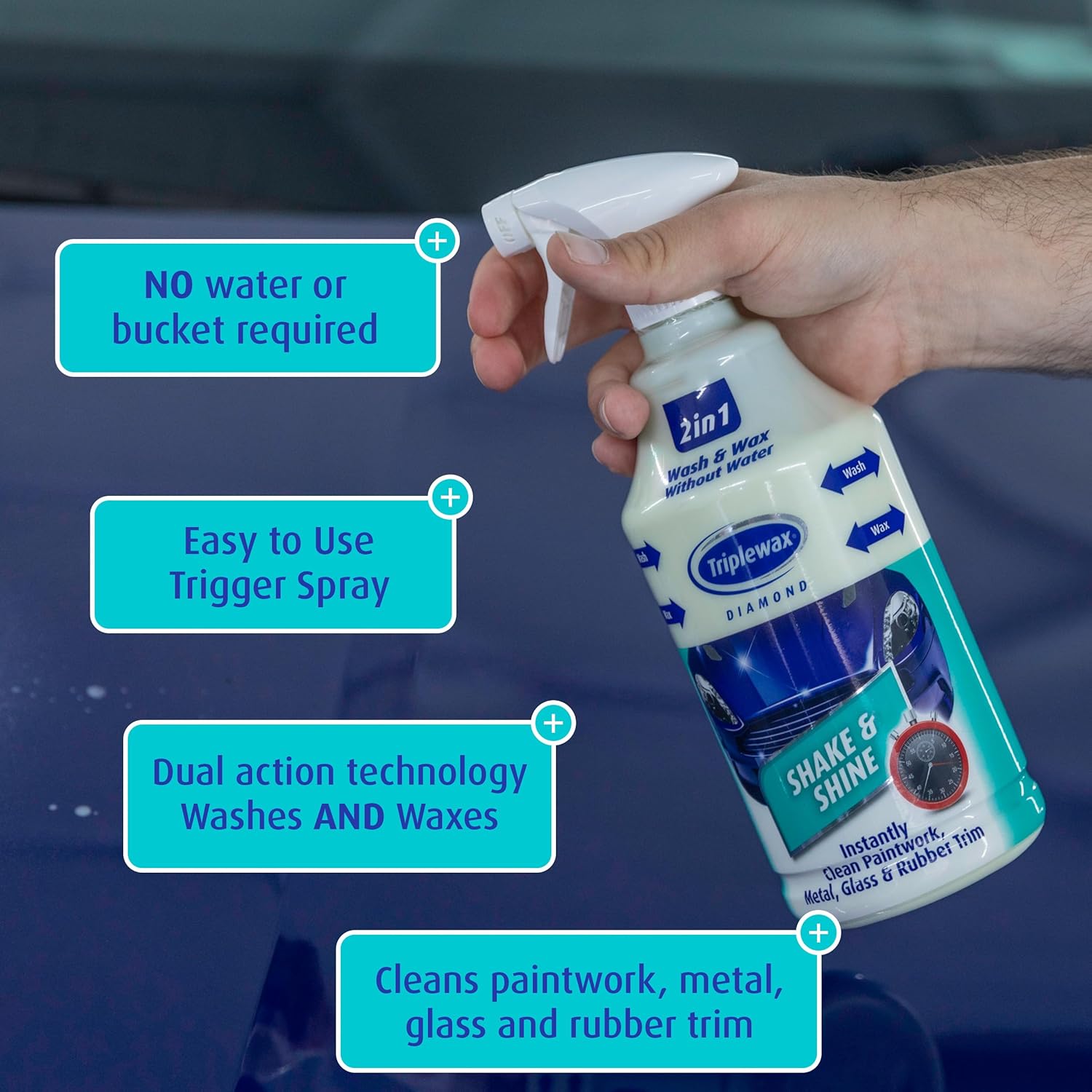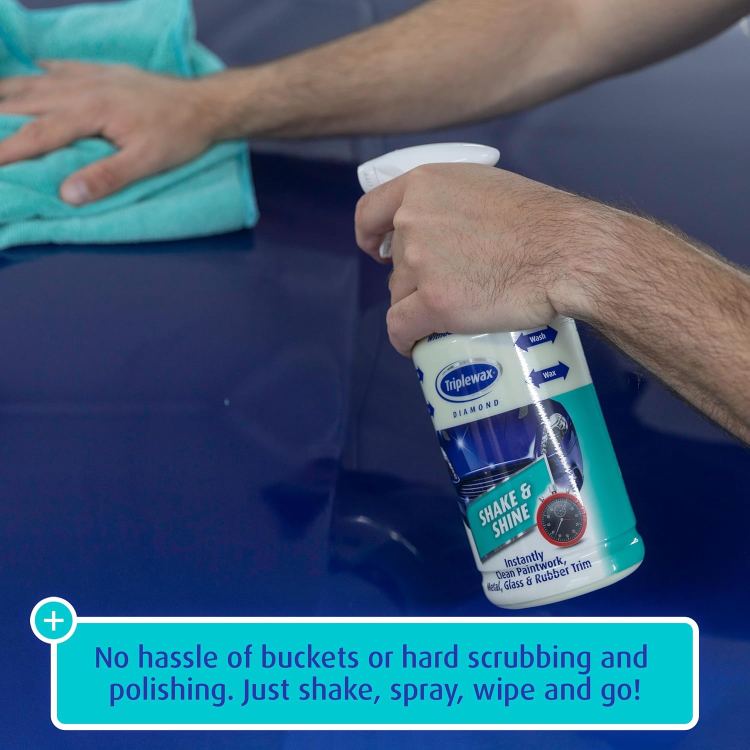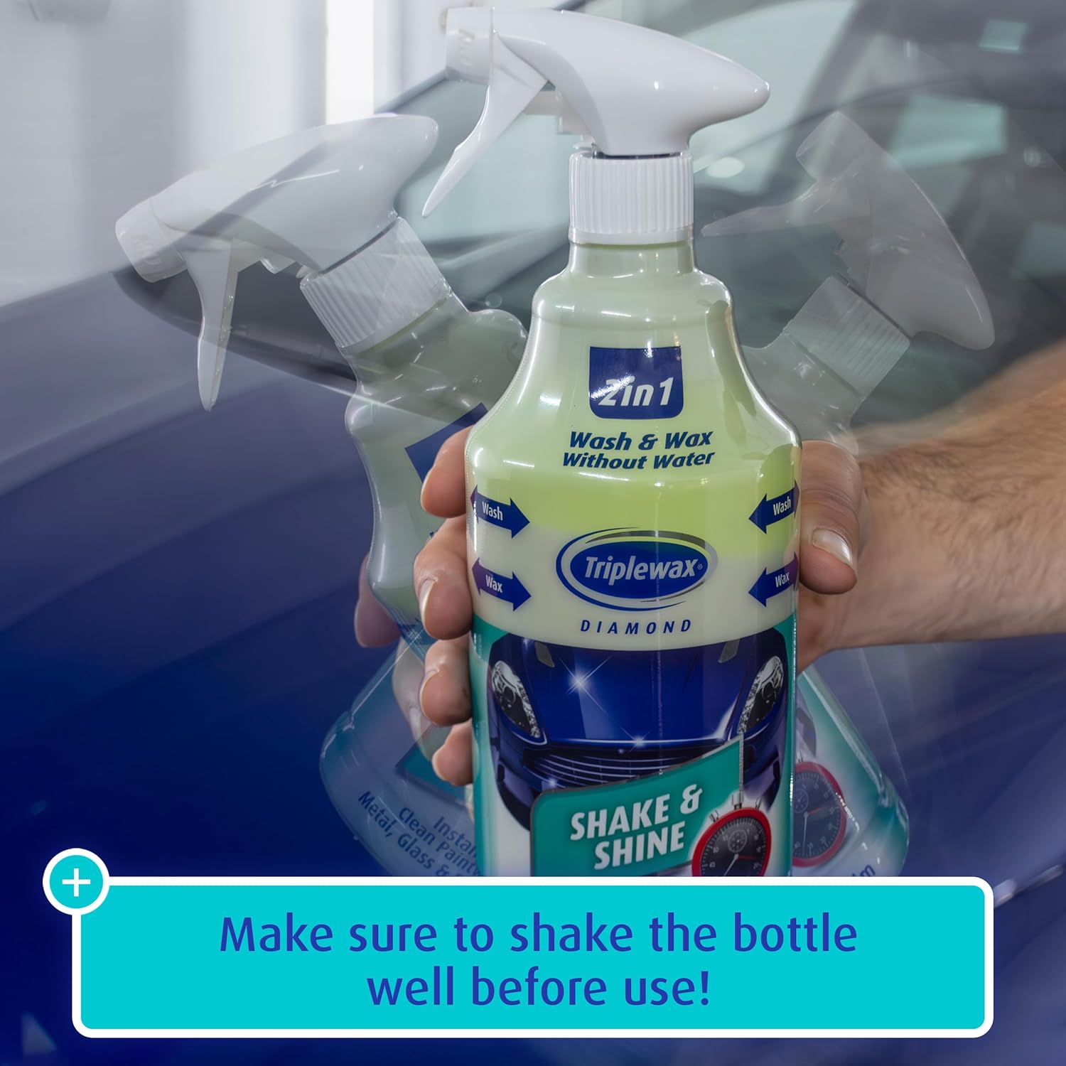 - Forget the buckets of water, hard polishing or expense of several cleaning products... just Shake & Shine and Go!