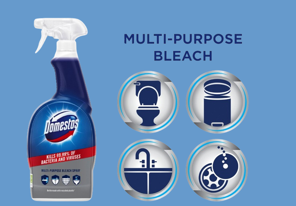 Domestos Bleach Multi-Purpose Cleaner Spray is suitable for cleaning and disinfecting surfaces around your home