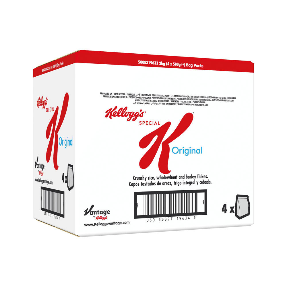 Start your morning with a tasty and nourishing bowl of Kellogg's Special K Original breakfast cereal. A deliciously crunchy combination of multigrain flakes of rice, wholewheat and barley. With a source of fibre, it's made with 38% wholegrain and, rest assured, there are no artificial colours or preservatives. Enjoy a delicious and satisfying breakfast to kickstart your day. Enjoy as part of a balanced diet and healthy lifestyle. Each bag contains 500g. Designed for loose display for self-serve. Pack of 4.