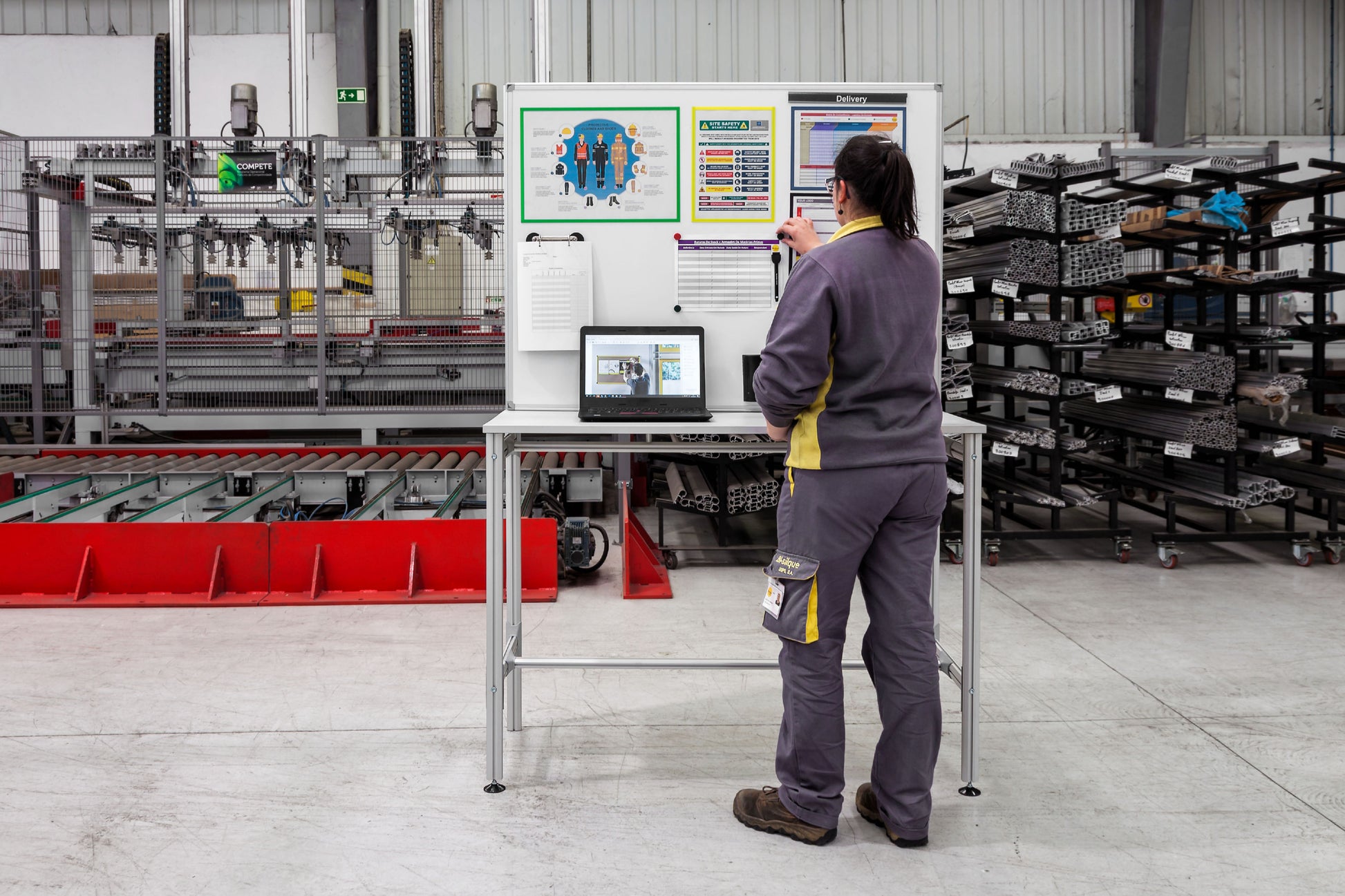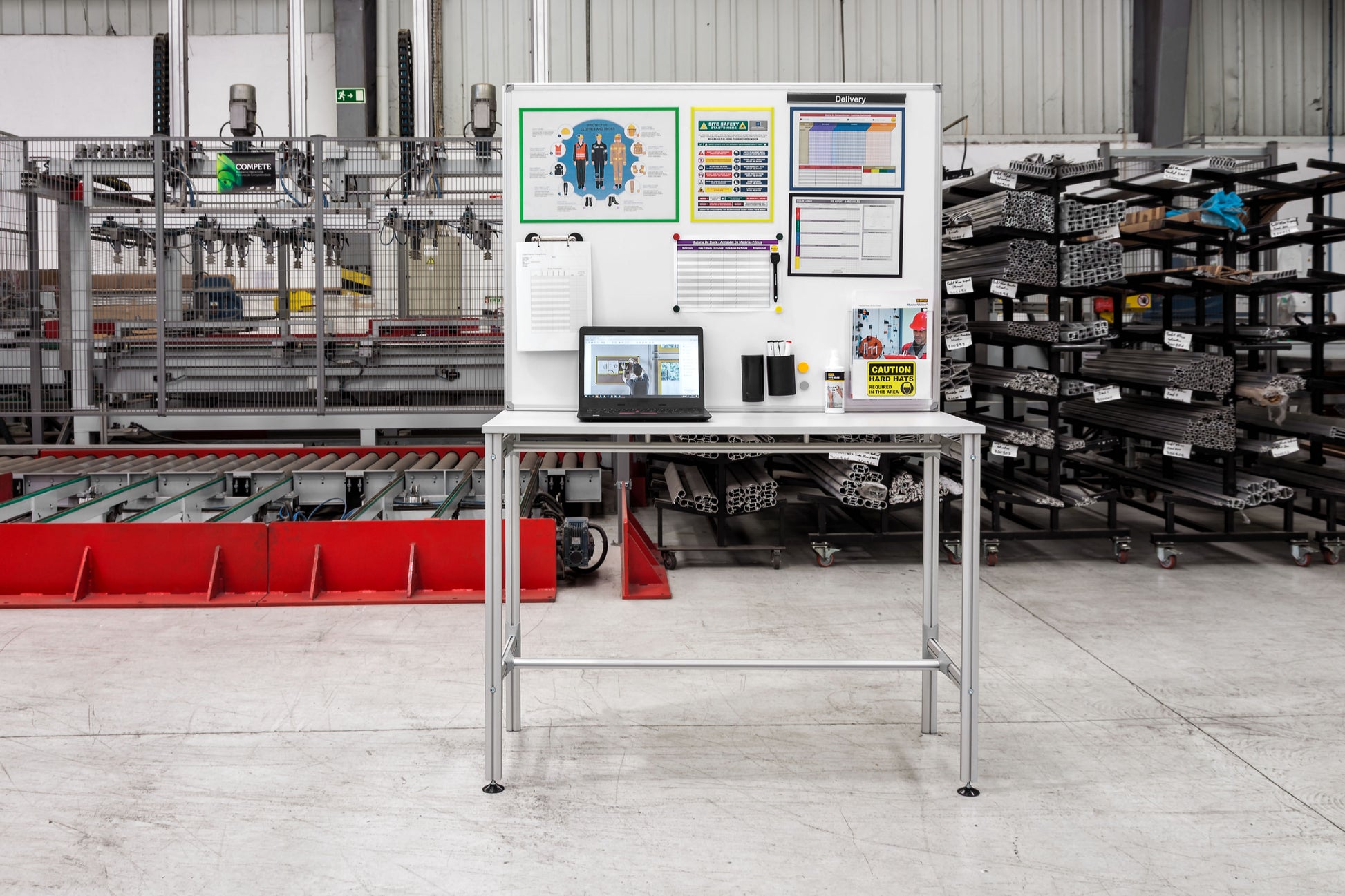 In continually changing workspaces, self-standing displays help you stay in control. The Industrial Desk offers safety, sturdiness and versatility, helping you keep up with the industrial floor's demands.