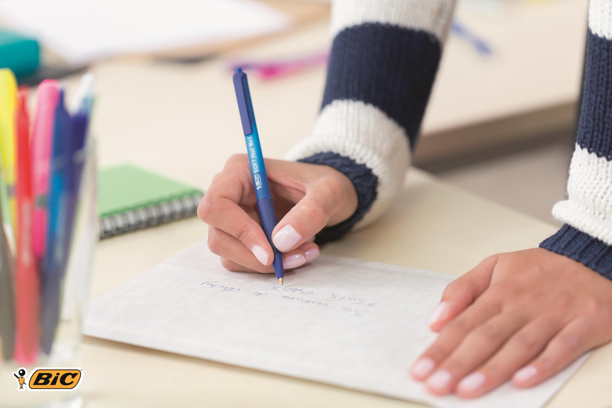 BIC Soft Feel Clic Grip Pen Set 3 Pack has been designed for the ultimate in writing comfort. The medium point retractable ball pen has black ink, and features an easy to use clic system. The 1.0mm tip gives a line width of 0.32mm.