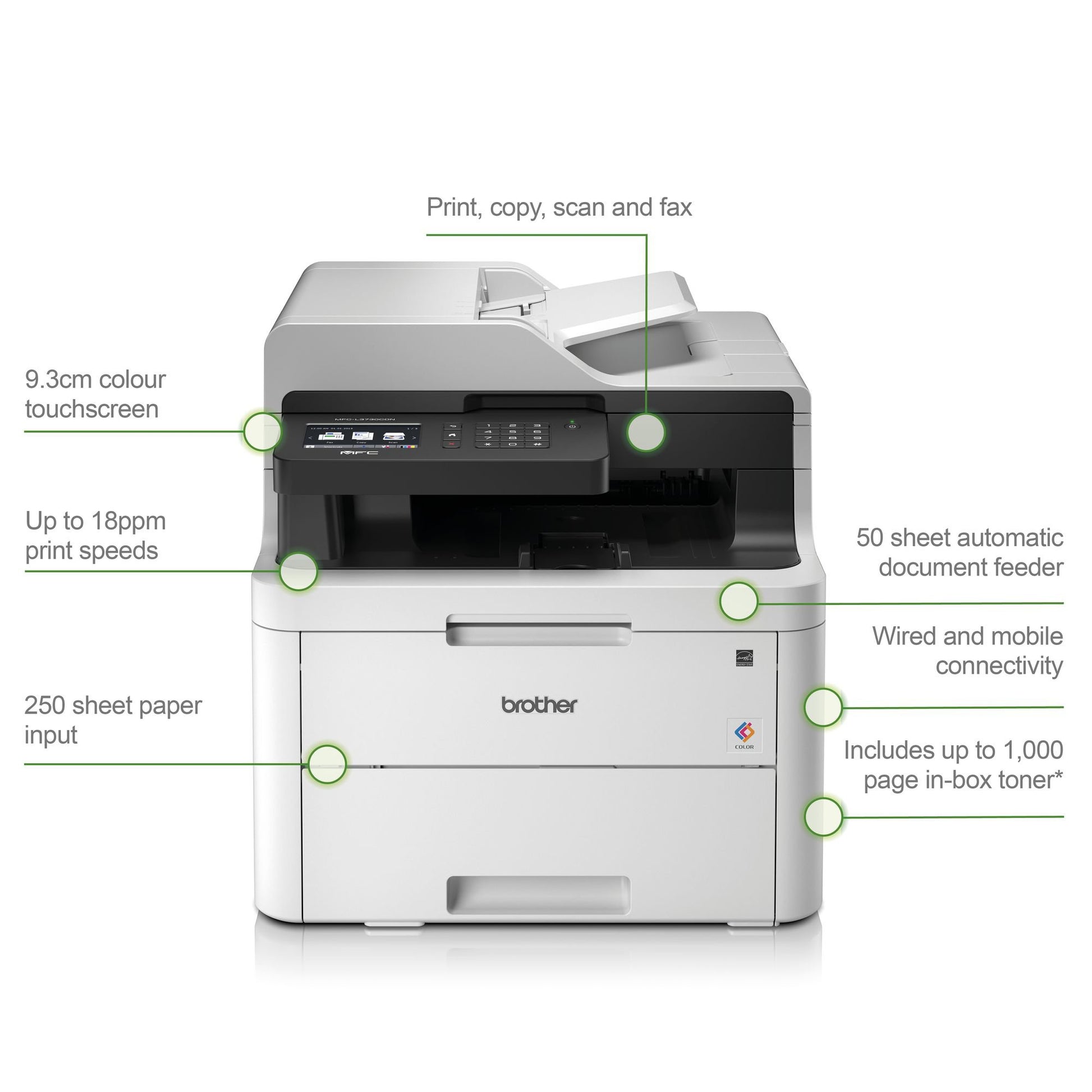 Designed for your busy home and small offices, the affordable MFC-L3730CDN comes feature rich, with fast print speeds and built-in wired connectivity, all in a quiet and compact unit. Together with automatic 2-sided printing, you won't need to refill the paper tray as often.