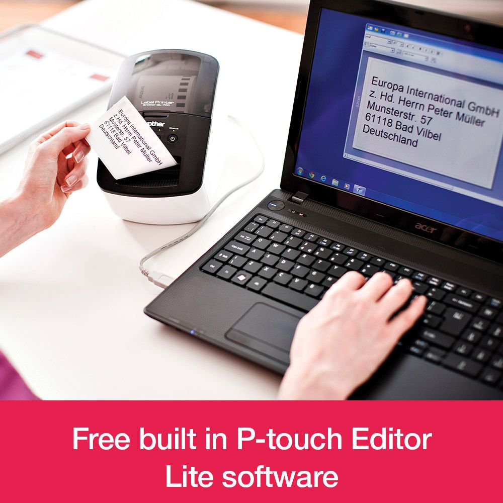 Offering versatility, convenience and Microsoft integration, the QL-700 delivers totally hassle-free address (and other) label printing. ¢€š¬ËœP-touch Editor Lite¢€š¬€ž¢ is pre-loaded to the printer itself so there¢€š¬€ž¢s no software installation required for PC or Mac.