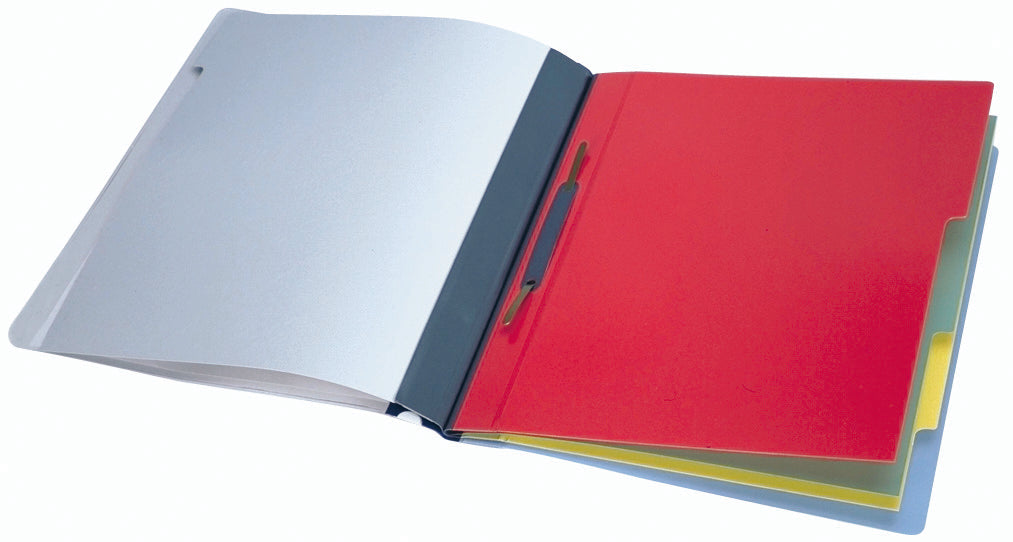 Five distinct folders in one for perfect organisation of your documents. Ideally suited as a project file, credit or insurance file. Transparent, A4 clear view pocket with blank Index sheet. Full-length label holder with blue PVC back cover. Five coloured sections, with tab and separate filing and mechanisms. Also includes a channel for A4 suspension rail.