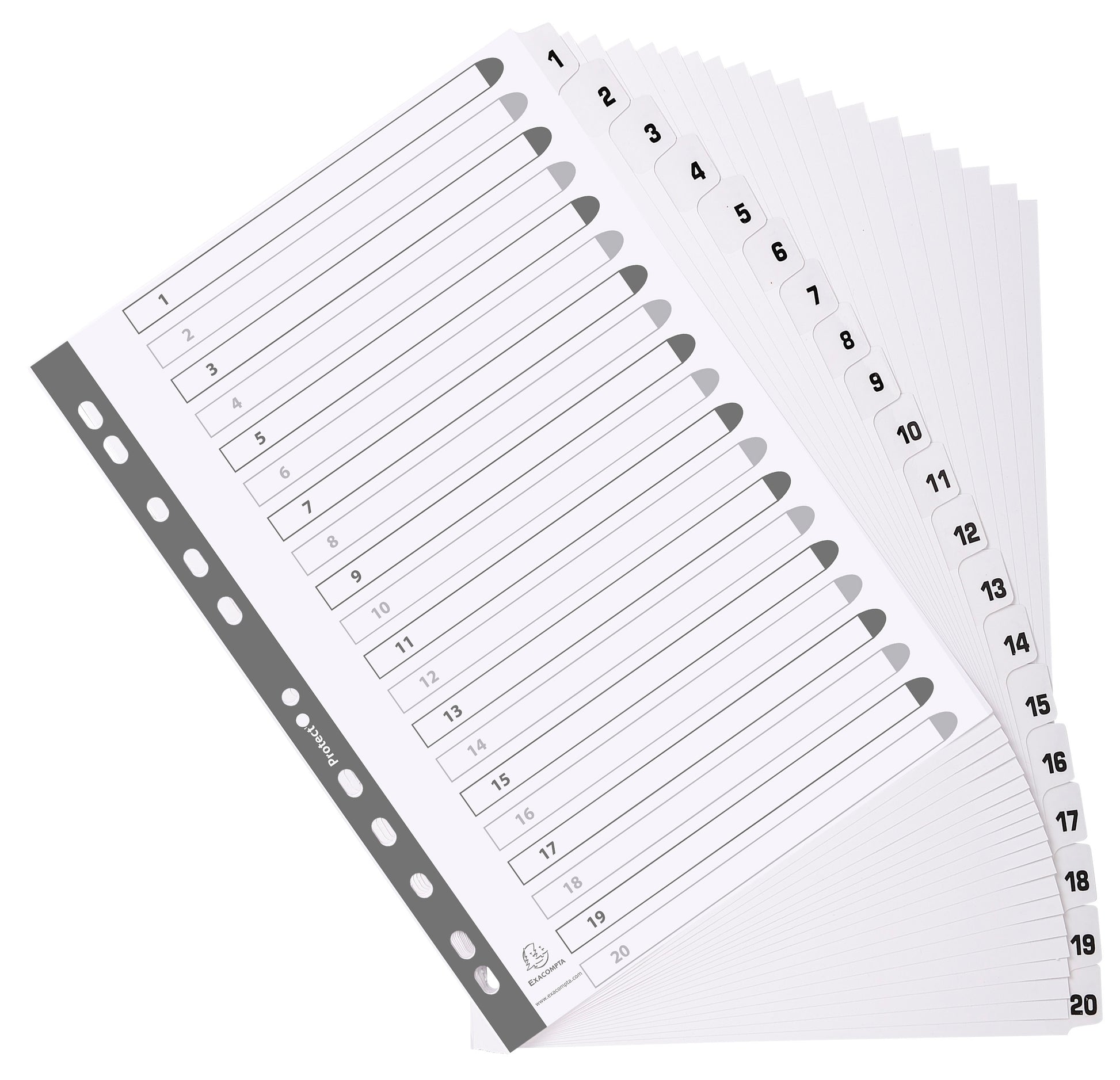 Exacompta Index 1-20 A4 160gsm Card White with White Mylar Tabs - MWD1-20Z