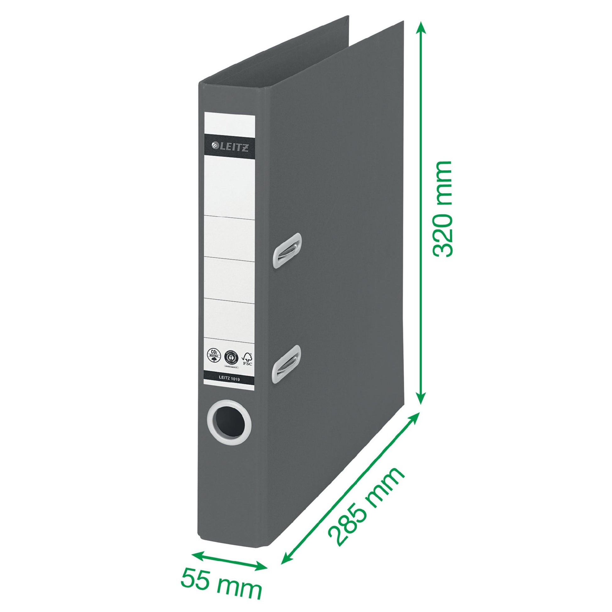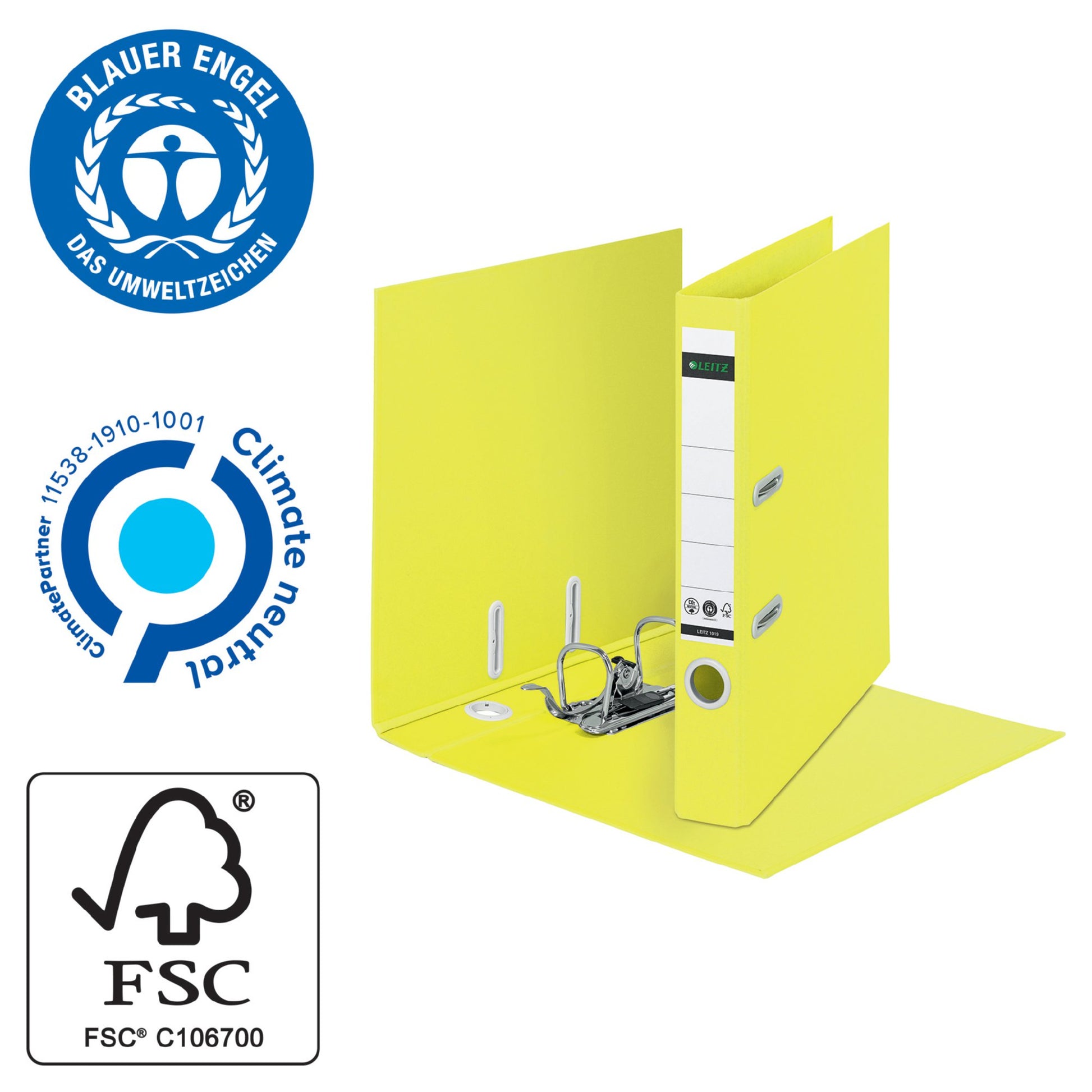 Eye-catching, premium quality Lever Arch File made from recycled materials which can be disassembled for complete recycling. 50mm wide and suitable for A4. Climate neutral, 100% recyclable and with FSC & Blue Angel environmental certification. This robust LAF perfectly complements other products from the Leitz Recycle range and is made to last. Modern and contemporary green stationery that will look great at home and in the office. With the eco friendly Recycle range from Leitz you can both improve your office environment ‚¬€œ and the environment of our planet.