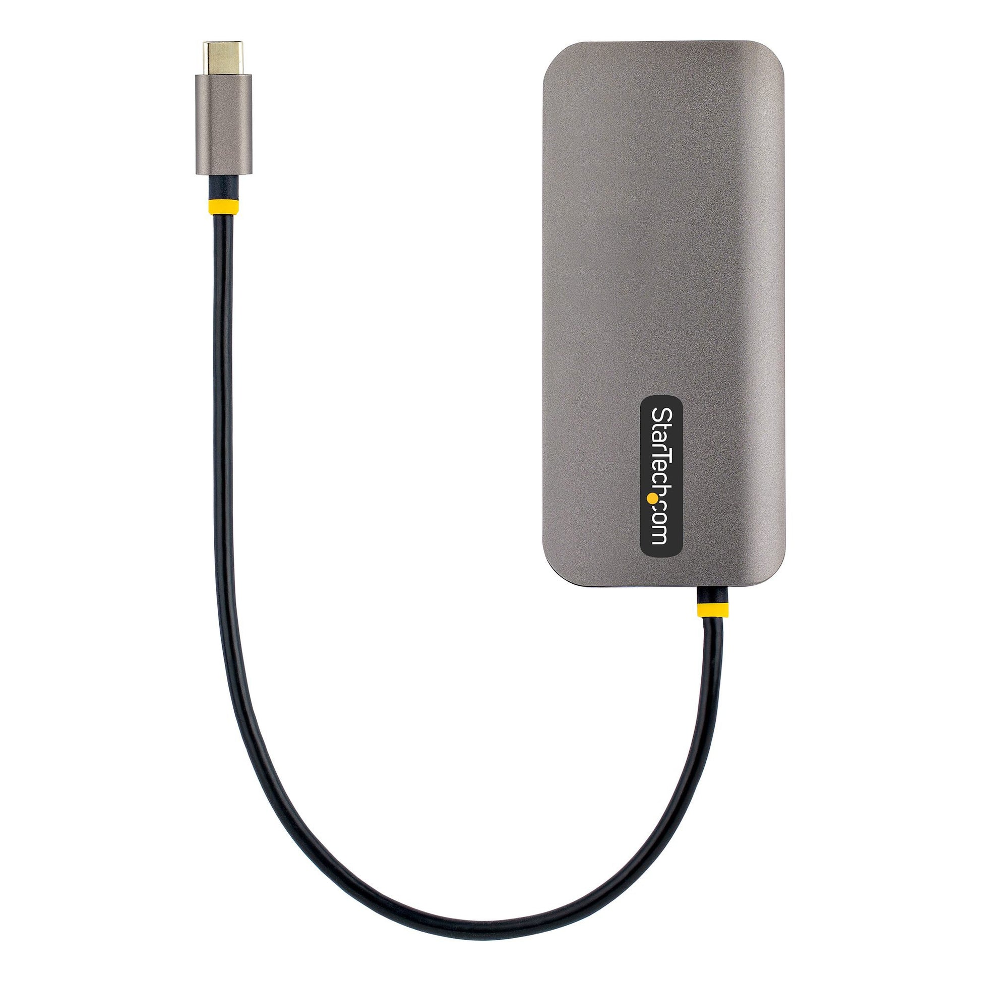 This USB-C Multiport Adapter with DP 1.4 Alt Mode supports 4K 60Hz HDMI (HDR) and turns your MacBook, Dell XPS, or other USB-C laptop or tablet into a workstation, anywhere you go. The USB Type-C Multiport Adapter features a 4K HDMI video output, three USB 3.2 Gen 1 Type-A (5Gbps) ports, SD and MicroSD card readers and a Gigabit Ethernet port, all through one connection to your laptop's USB-C, USB4, or Thunderbolt 3/4 port. Plus, it offers advanced charging and flexibility through a shared USB-C Power Delivery 3.0 and Data port which can be used to connect peripherals, with USB 2.0 transfer speeds (480Mbps), when a power source is not connected. The Multiport Adapter features an extra-long attached 12-inch (30 cm) host cable - for an extended reach, to offer more set up flexibility.