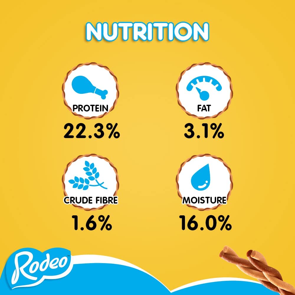 Pedigree Rodeo Dog Treats with Chicken 12 x 7 Sticks {Full Case}Pedigree dog food feeds the goodness that dogs brings to our lives with a complete range of tasty and healthy dog food and dog treats that delivers everything that is essential to support, protect and spark all dogs' exuberant love of life. Pedigree dog food and treats are carefully developed with nutritionists and veterinarians to ensure they have everything dogs need to thrive.Pedigree Rodeo Dog Treats with Chicken are chewy dog treats full of delicious flavours which your dog will adore. Contains less than 5% fat / 100g and are full of goodness such as omega 3 to help keep them fit for life, vitamin E to help support natural defences, with minerals including calcium to help keep bones strong.Suitable for adult dogs from 12 months old.Approximate Dimensions (Product): 21 x 10.5 x 2cm