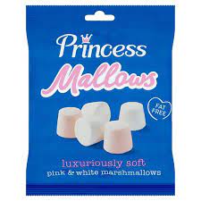 The Princess Mallows are so soft and fluffy they'll melt in your mouth. Light and squishy pink and white mallows, totally fat free and packed in a generous share bag.