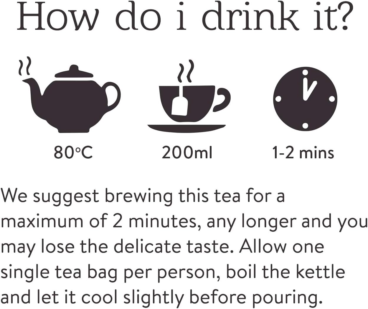 - Pack of 20 individually wrapped tea bagsThe Taste... Natural, Pure & RefreshingGentle sencha steaming and pan firing creates this refreshing, earthy blend which retains its natural, distinctive flavour.Springtime signals the first flush of our pure green tea. As dawn breaks and the dewy mist hangs in the air, the first buds and leaves are picked to lock in the fresh green flavour. Gentle sencha steaming and pan firing brings a light, toasty flavour to the tea, for a cleaner, more refreshing taste. Once given as a precious gift in China, let this gentle tasting blend be a gift from us to you.How do I drink it?We suggest brewing this tea for a maximum of 2 minutes, any longer and you may lose the delicate taste. Allow one single tea bag per person, boil the kettle and let it cool slightly before pouring.