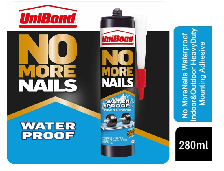UniBond No More Nails Waterproof Eliminates the need for nails and screws inside and outside the homeAre you tired of having to use nails and screws during DIY or repair jobs? UniBond No More Nails Waterproof construction adhesive is a heavy duty adhesive ideal for both interior and exterior DIY or repair jobs, without the need for nails, screws or hassle.